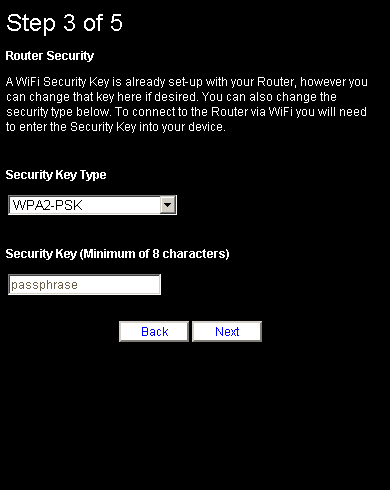 - Create a password that will be used to access your wireless network. This needs to be entered into the field marked Security Key.